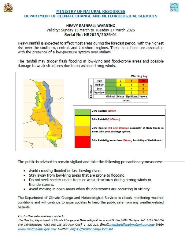 HEAVY RAINS WARNING FROM 07TH JANUARY TO 9TH JANUARY 2026.